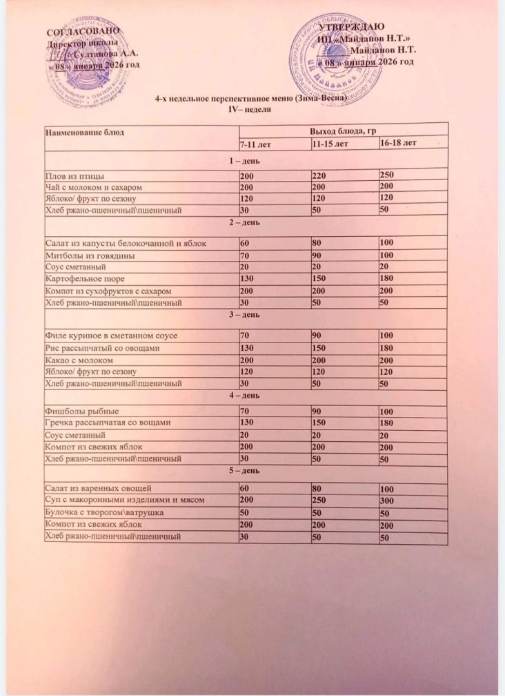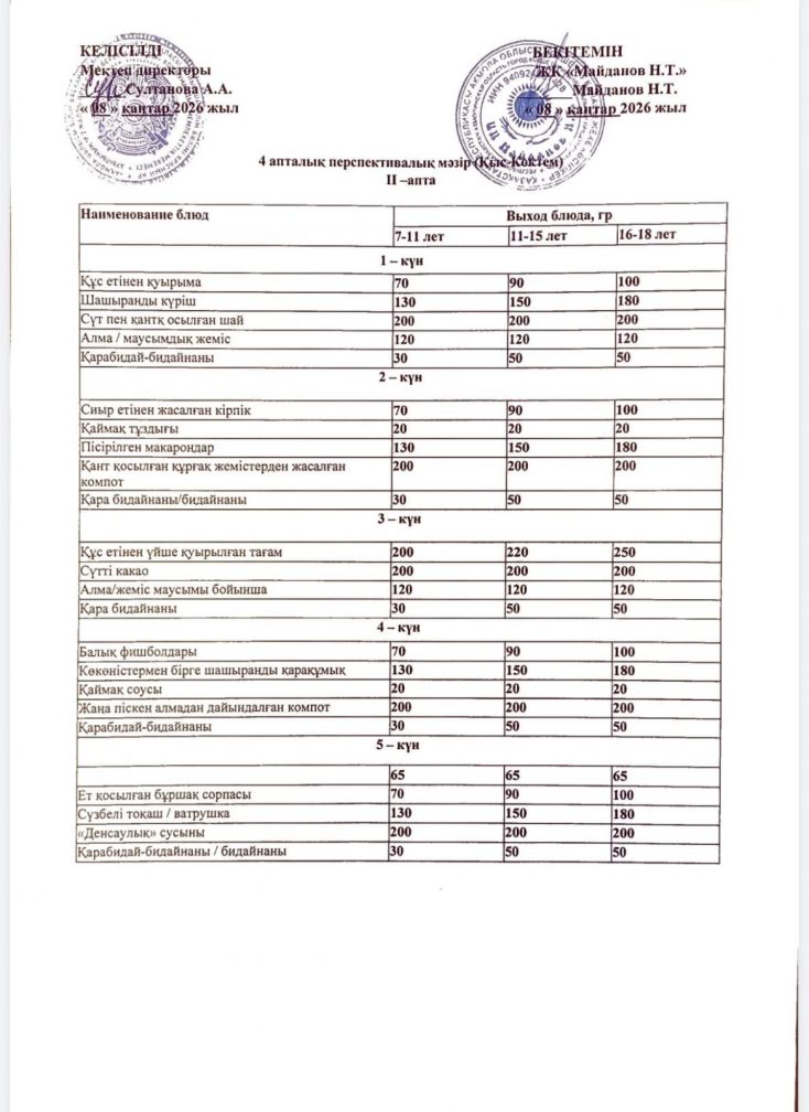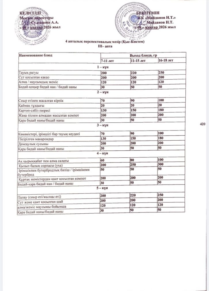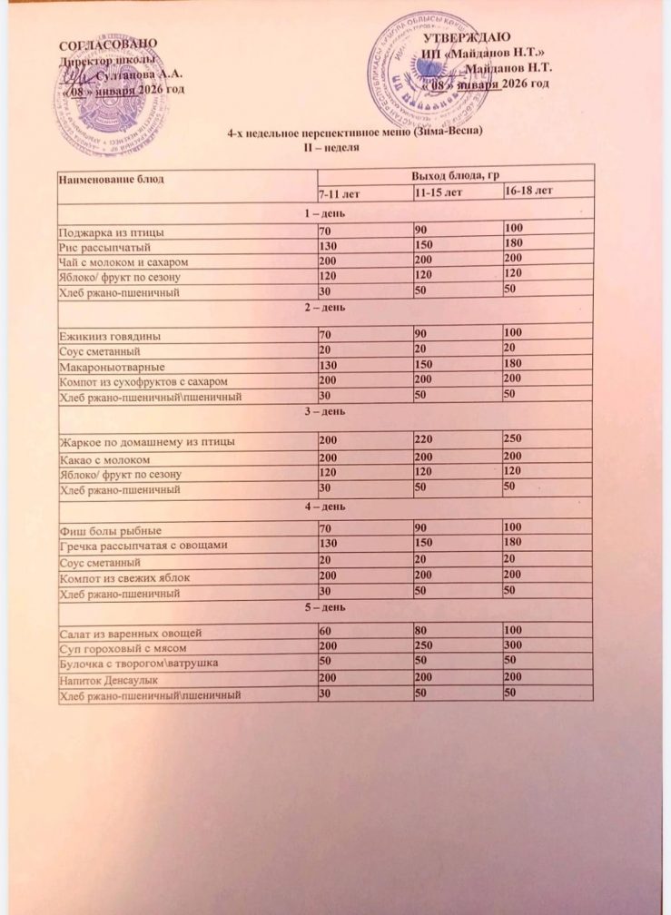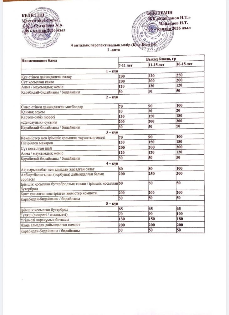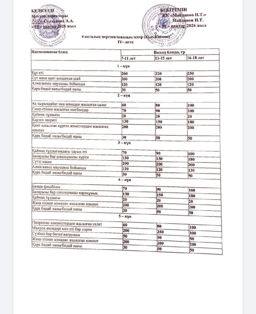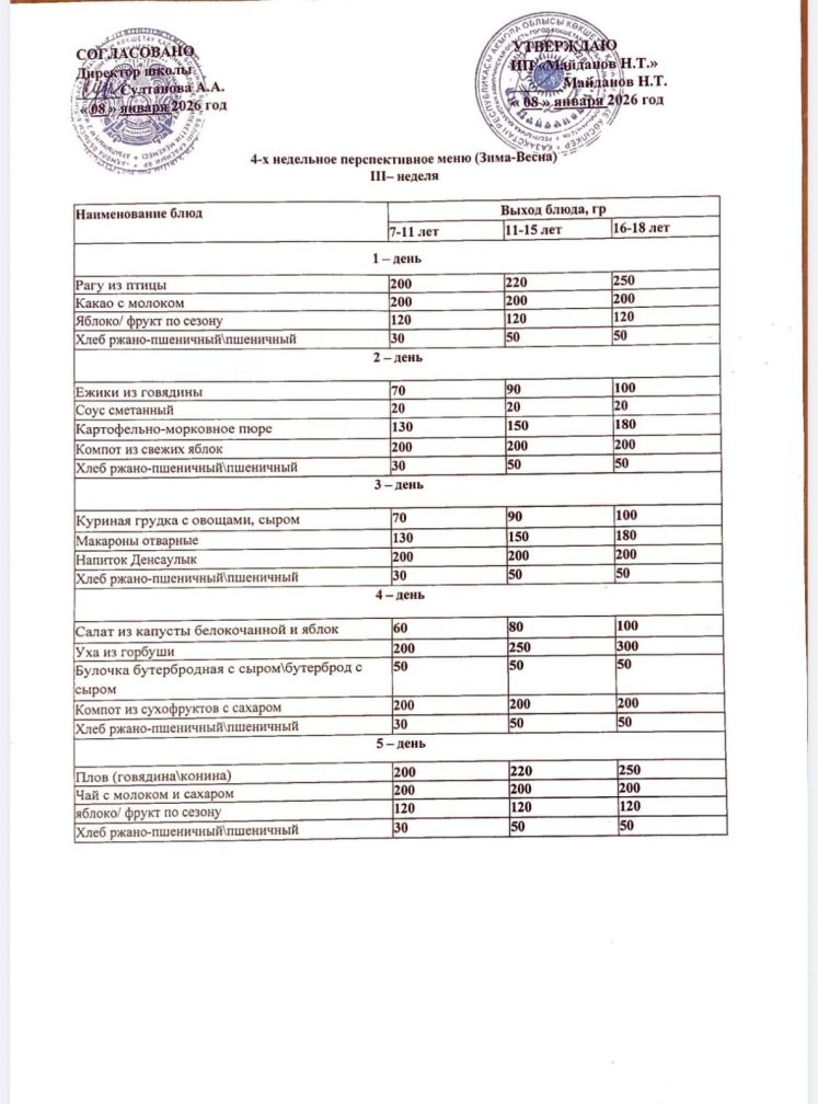 2019-2020 оқу жылы ас мәзірі(Қыс-көктем)